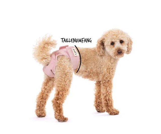 Das Tragen von Läufigkeitshosen schützt Boden, Teppich und Sofa vor Flecken während der Läufigkeit der Hündin.